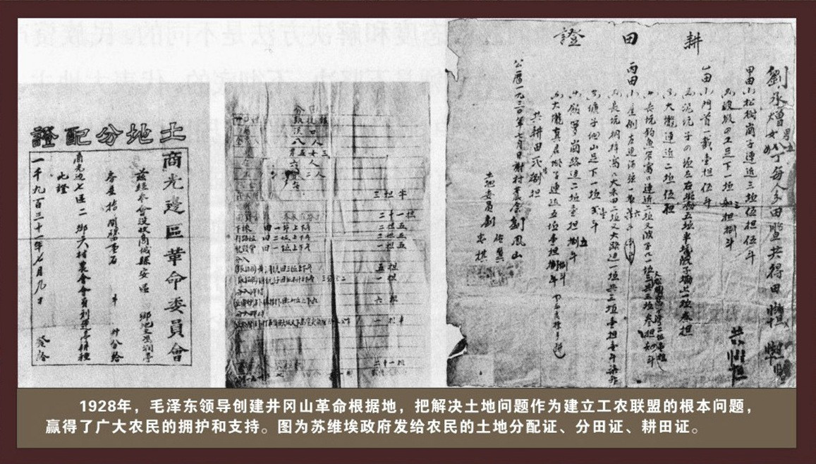 1929年初党的六大精神传达到井冈山后,又结合实际领导制定了关于土地问题的一系列法令法规,主要是将大中小地主、地主与富农区别开来,集中力量打击大中地主。经过不断探索和总结,中国共产党初步形成了一条依靠雇农、贫农,联合中农,保护中小工商业,限制富农,消灭地主阶级,变封建和半封建的土地所有制为农民的土地所有制的土地革命路线,以及有关的基本政策,解决了在农村依靠谁、团结谁、打击谁的问题,使井冈山革命根据地蓬勃发展,为以后赣南根据地的形成发展和中央革命根据地的建立奠定了基础。