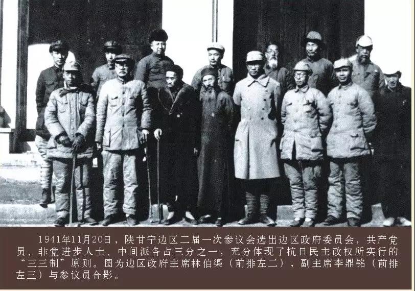 按照“三三制”原则,各根据地先后通过民主选举建立起临时参议会和政府机关。1941年7月,晋冀鲁豫边区召开临时参议会第一次会议,133名参议员出席,其中有共产党员46名,占三分之一多。11月,陕甘宁边区召开第二届参议会第一次会议。陕甘宁边区参议会各议员小组提出的常驻议员和政府委员候选人名单中,共产党员人数较多,于是谢觉哉、马文瑞等12名党员自动要求退出政府委员候选人,萧劲光等6名党员退出常驻议员候选人,后经无记名秘密投票方式从39名候选人中选出18名政府委员,其中共产党员占7名,略超过三分之一。此时,共产党人徐特立当即声明退出,经大会通过,以党外人士白文焕递补。林伯渠当选边区政府主席,开明绅士李鼎铭被选为副主席。李鼎铭在就职演说中讲:共产党很愿意大公无私做到精诚团结,各党派、无党派人士应互相信任,互相亲爱,看成一家人,同力合作,干这抗战建国的事。