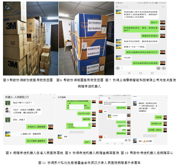 目前,黄邦全教授已帮助协调了民进会员捐赠物资从德国杜塞尔多夫运送回国;参与协调了捐赠医用物资从新加坡运送回国;协调对接上海擎朗智能科技有限公司向湖北、重庆、云南的定点医院捐赠传送机器人,减少医护人员与病人直接接触,降低交叉感染;协调苏州弘化社慈善基金会向武汉大学人民医院捐赠紫外杀菌车等。