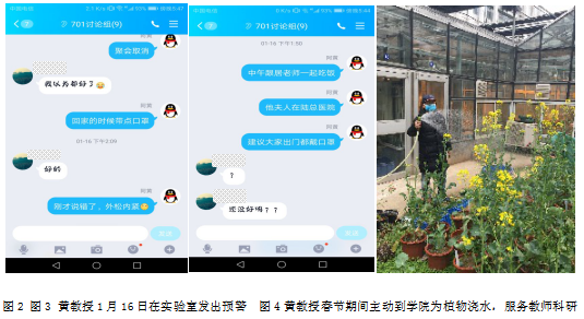 春节期间,黄邦全教授自发申请前往学院,为科研植物浇水,排查安全隐患,服务其他教师的科研工作,尽己所能助力疫情防控。