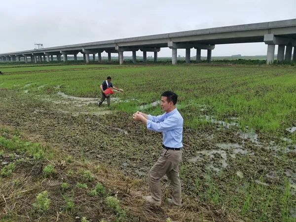 今年6月,刘俊松通过同黄石市科技成果产学研对接,选定在黄石国家农业科技园区一家水稻生态种植园开展生物法防治杂草的大田试验。6月20日,刘俊松冒着暴雨,从武汉驱车数百公里,抵达黄石军垦农场,在雨中指导企业方进行除草试验,其后又将用生物技术处理过的稻种,驱车送到黄石试验地,指导水稻大田播种。