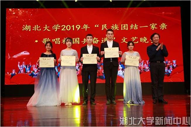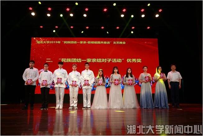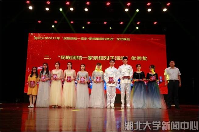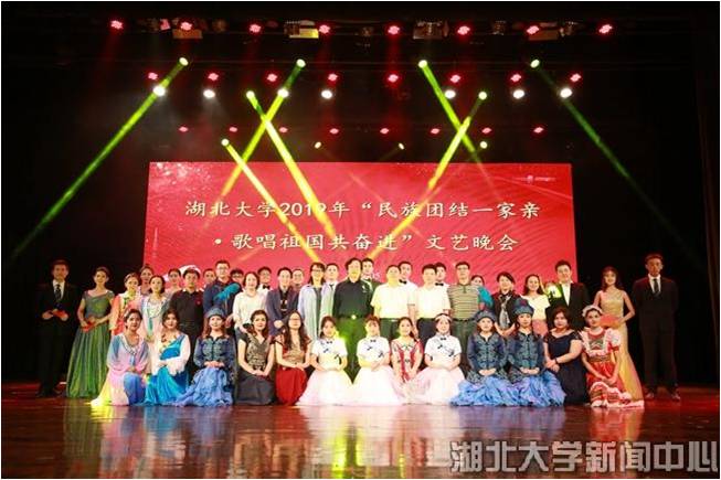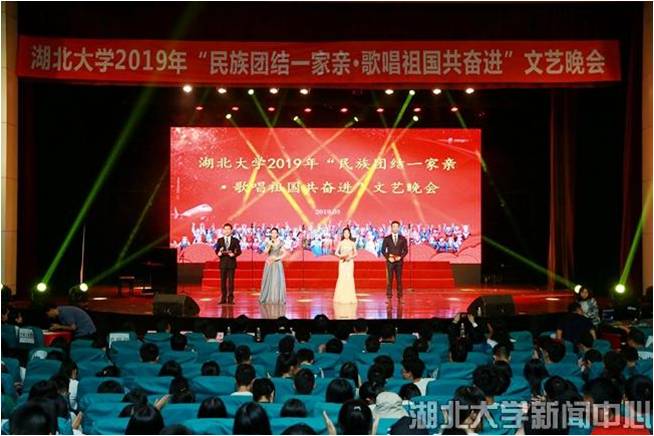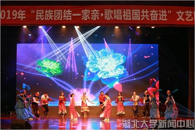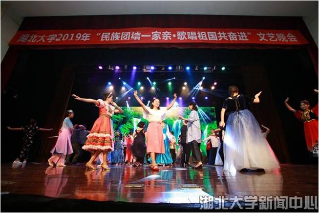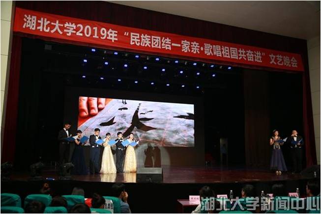 5月29日,湖北大学“民族团结一家亲·歌唱祖国共奋进”文艺晚会在小礼堂欢乐上演,“民族团结一家亲”主题教育活动中结对子学生一起用歌声、舞蹈、朗诵、书法等展现各民族风采,为中华人民共和国70周年华诞送上真诚祝福。