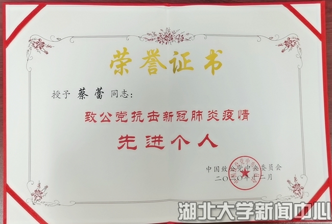 蔡蕾被致公党中央授予抗击新冠肺炎疫情“先进个人”