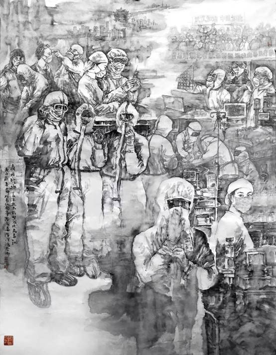 谭崇正 谭溟鸿 《疫情·战场》国画180x145cm 2020
