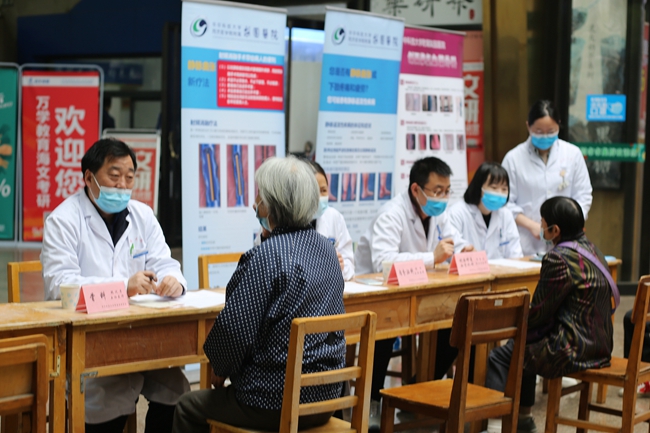 4月21日,校医院联合农工民主党湖北大学支部邀请武汉大学中南医院、华中科技大学同济医学院附属梨园医院部分科室专家来校,为离退休教职工、师生和社区居民开展义诊。校纪委书记、监察专员檀坤华,副校长肖德到现场看望义诊专家和医护人员。