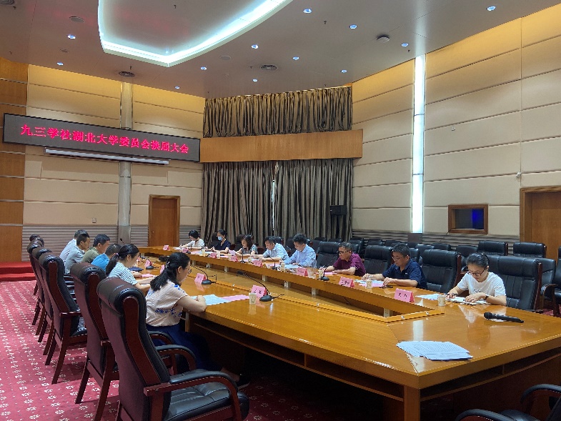 副主委王海人代表九三学社湖北大学委员会作工作报告,对委员会近5年的工作进行了简要回顾。会议选举产生了九三学社湖北大学第二届委员会,李圣纯副教授当选为主委。民盟湖北大学委员会主委张海谋到会致辞。