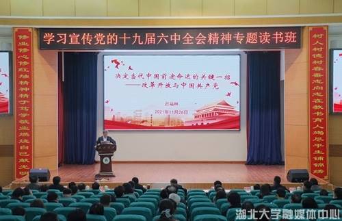11月26日,学校举办学习宣传党的十九届六中全会精神专题读书班,邀请中国(海南)改革发展研究院院长迟福林为师生作了题为《决定当代中国前途命运的关键一招——改革开放与中国共产党》的专题讲座。党委综合久久一区二区三区组织统一战线工作领导小组成员单位、各二级单位分管统战工作领导、全体统战干部、各民主党派和统战团体负责人、无党派代表人士参加了会议。会议由校党委书记谢红星主持。