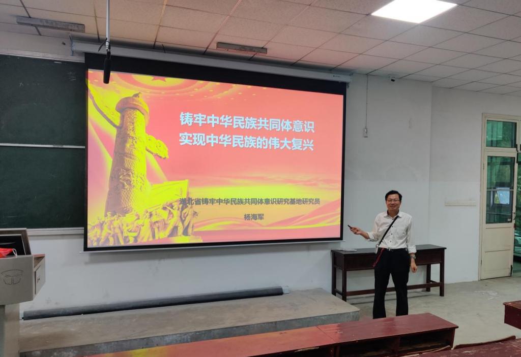 2022年5月11日下午,湖北省铸牢中华民族共同体意识湖北大学研究基地办主任杨海军副教授在三号教学楼201为思想政治教育专业学生做了题为“铸牢中华民族共同体意识,实现中华民族的伟大复兴”的理论宣讲。