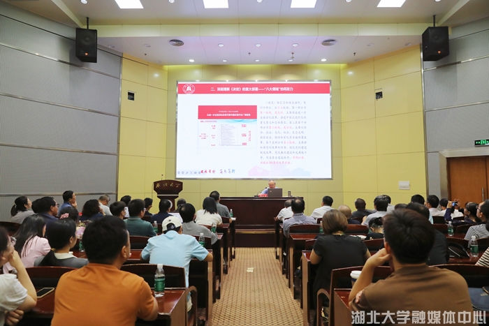 谢红星以《在推进中国式现代化新征程上奋力开拓高等教育高质量发展新局面》为题,聚焦党的二十届三中全会的重大意义,从“七个聚焦”“八大领域”“六个坚持”全面准确讲解了党的二十届三中全会精神的科学内涵和精神实质,并结合高等教育实际,提出了全力推动党的二十届三中全会精神在学校落地见效的具体工作要求。