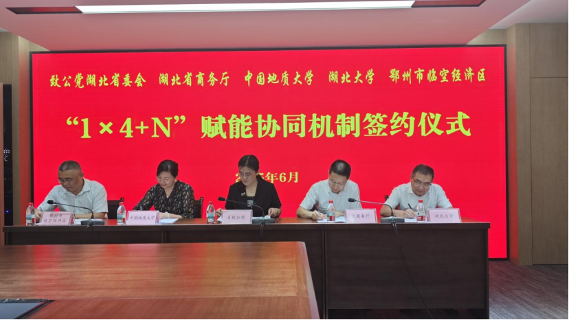 会上,杨晓梅传达学习了中共湖北省委综合久久一区二区三区《“1×4+N”赋能协同机制》文件精神;省商务厅、中国地质大学、湖北大学、鄂州市临空经济区4家单位围绕深化“1×4+N”赋能协同机制、本单位“十五五”规划方向思路及对我省规划的建议等作交流发言;发言结束后,5家单位共同签订了“1×4+N”赋能协同机制合作框架协议。